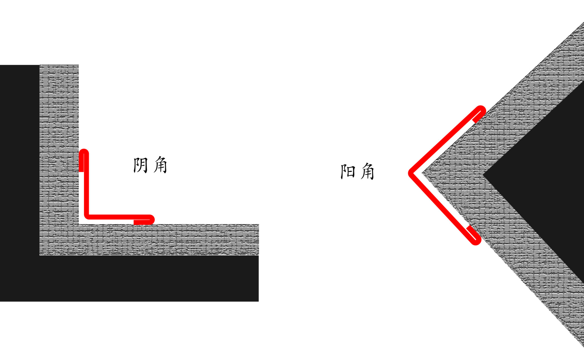 L型的金屬線條常用在陰陽角包角的地方,直接粘上即可。