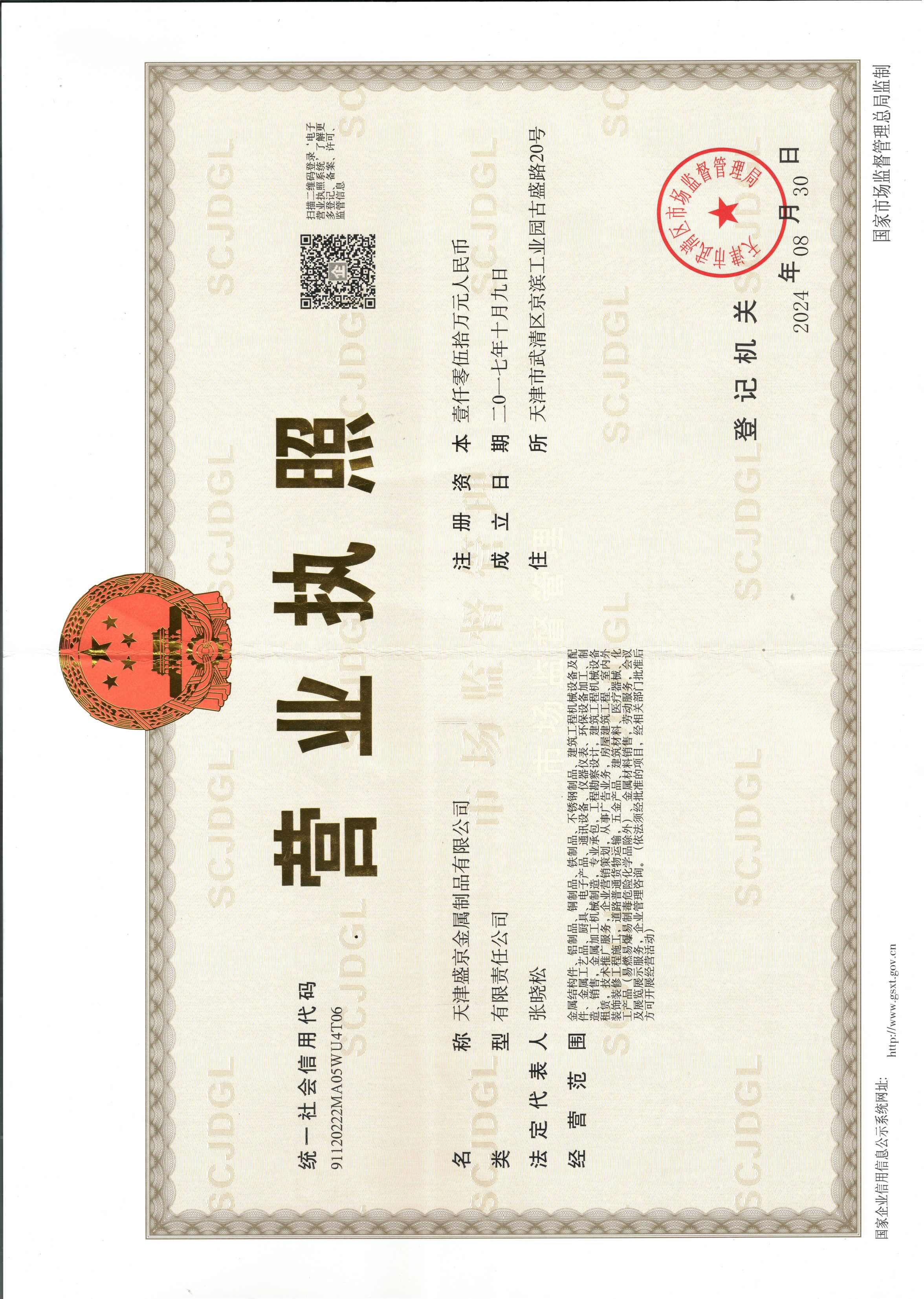 生產部門,成立天津盛京金屬制品有限公司(簡稱“盛京金屬”),加強公司產品生產和技術開發。公司將圍繞以不銹