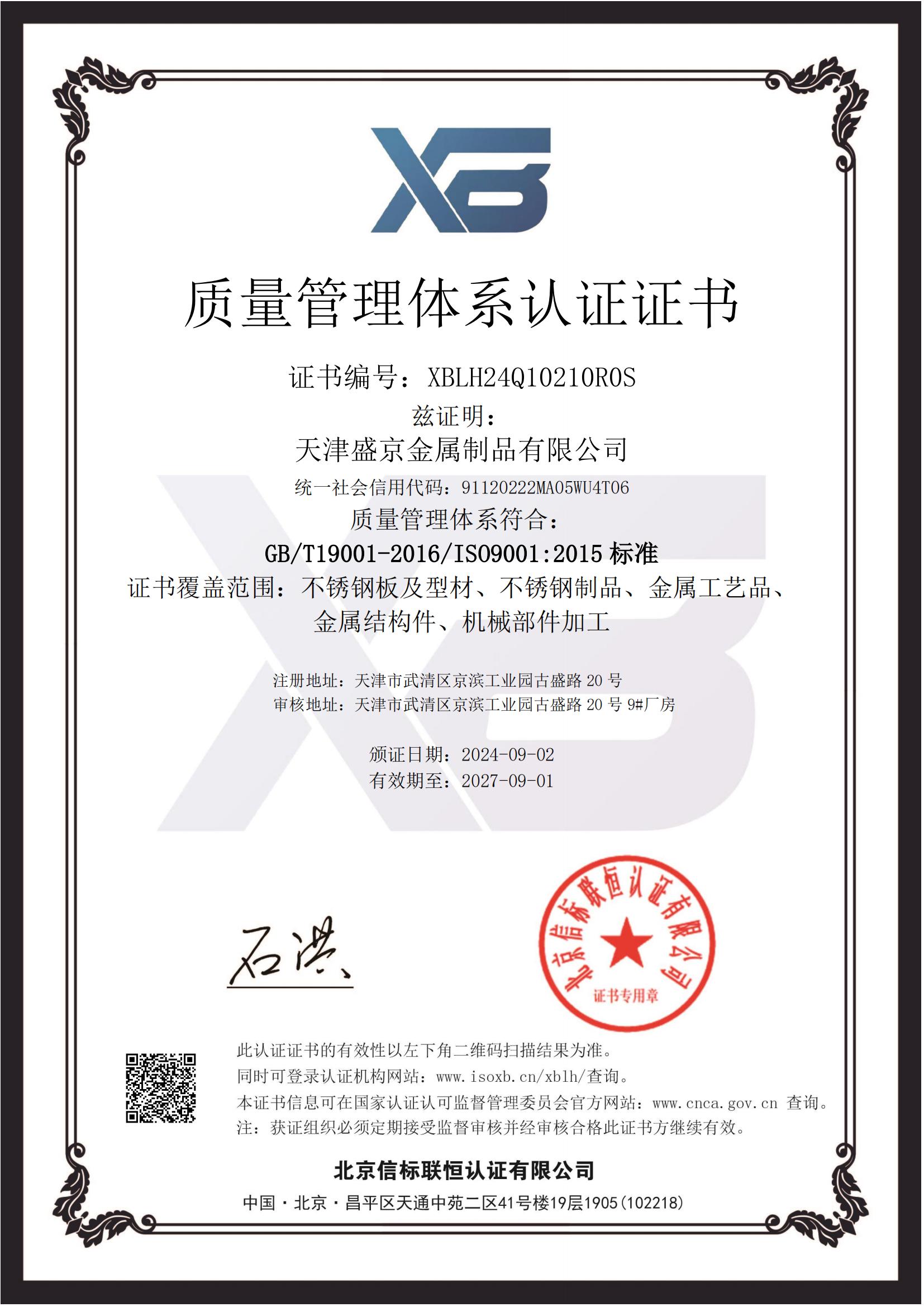 工、成品檢驗及發貨出廠等環節形成一套完善的管理體系,并且通過ISO9001質量管理體系認證等資質認證。規范標